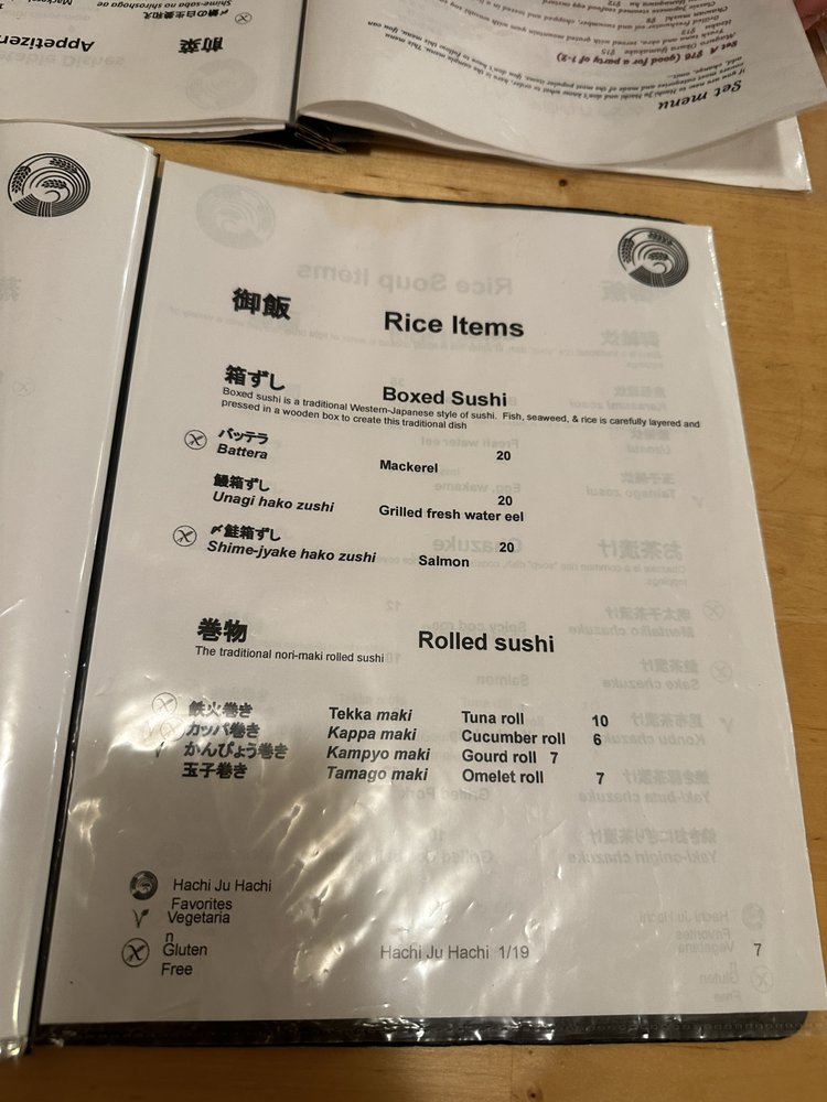 Welcome to Hachi Ju Hachi, a hidden gem nestled in Saratoga, California, offering an authentic taste of Japanese seafood cuisine. The menu is a delightful showcase of both boxed and rolled sushi, featuring exquisite options like Unagi Hako Zushi and the ever-popular California Roll.